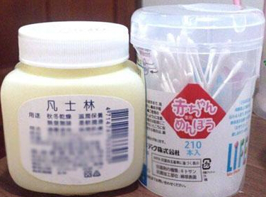 准备工具:幼儿用细棉棒/大人用棉花棒(可省略)/凡士林(有人说用婴儿油,但凡士林比较好操作,而且不容易乱滴)