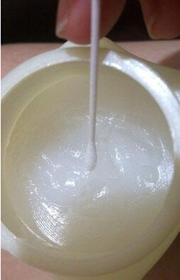 第一步:用干净的棉棒挖取凡士林,约使用一颗红豆大小。